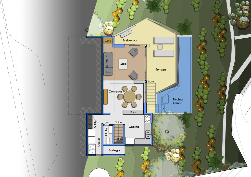- Sala con capacidad para 5 personas y nicho de café/bar.