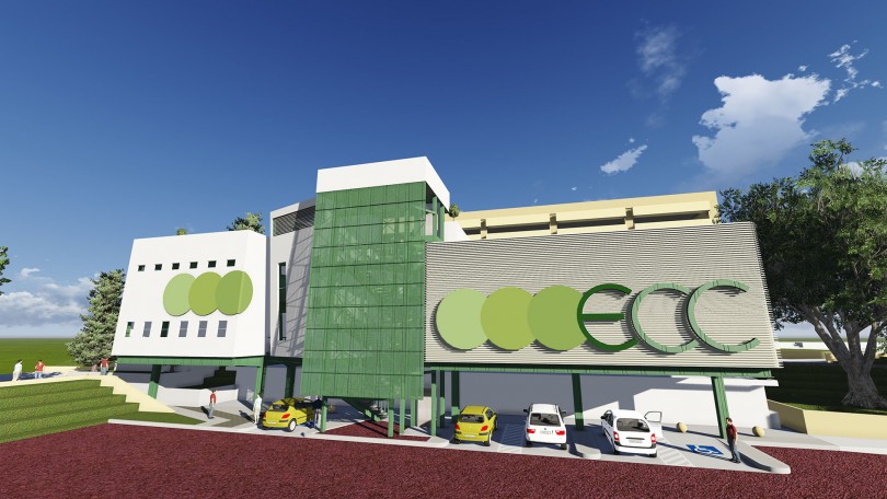 Este proyecto toma las características de la arquitectura contemporánea al utilizar los materiales en forma sincera, la preconcepción de la estructura en perfil metálico forma parte de la idea arquitectónica que busca exponer los elementos sustentantes como elementos intrínsecos del edificio, estos son enfatizados con la aplicación del color verde institucional de la ECC brindando identidad. Los volúmenes se manejan sólidos o con segundas pieles en metal para responder a la sinceridad a través de los acabados y, a la vez, ofrece la oportunidad de aislar termo-acústicamente los espacios que lo necesitan. Finalmente, en el centro, el volumen rotado cumple una función enfática dentro de la arquitectura, la cual se acentúa inclinando la pared de su fachada provocando un dosificado dramatismo que dinamiza los volúmenes concebidos ortogonalmente.