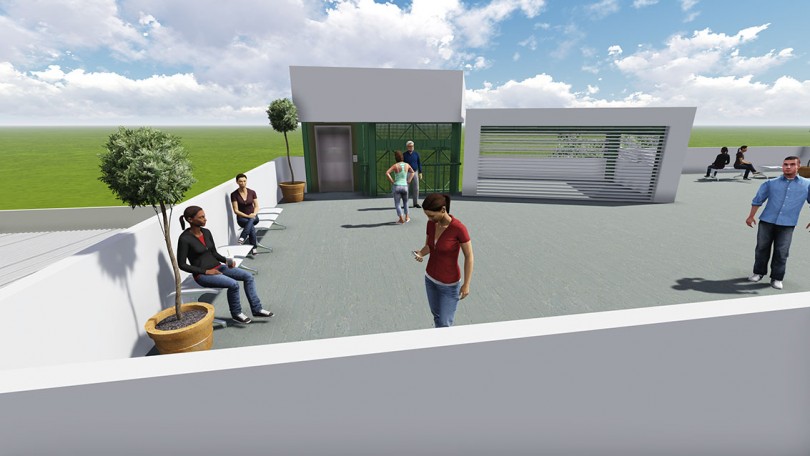 En vista de que la arquitectura propia de los estudios de comunicaciones, por su naturaleza excluyente del entorno exterior tiende a ser simple, se propone un tratamiento superficial basado en una composición gráfica que identifique al Edificio de Laboratorios ECC.