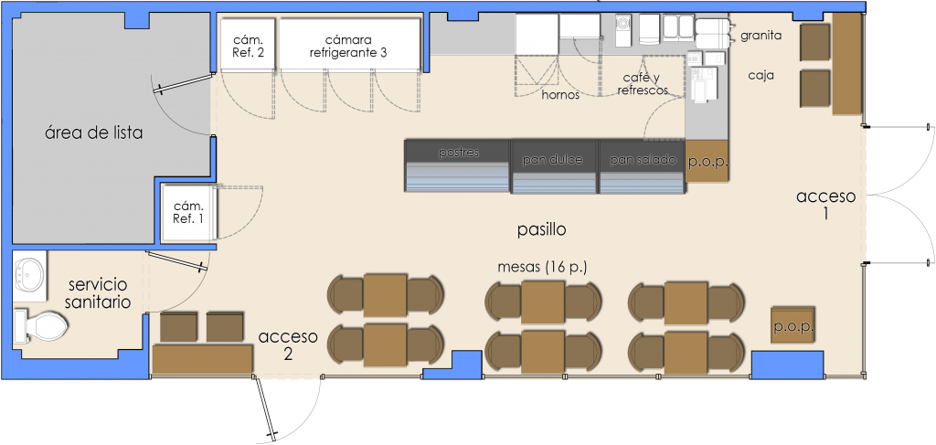 Este local cuenta con un área total de 64.50 m2, el programa espacial con el que se organiza el proyecto es el siguiente: