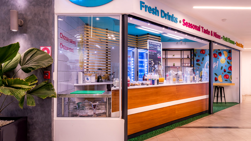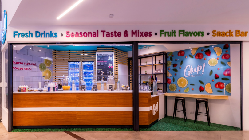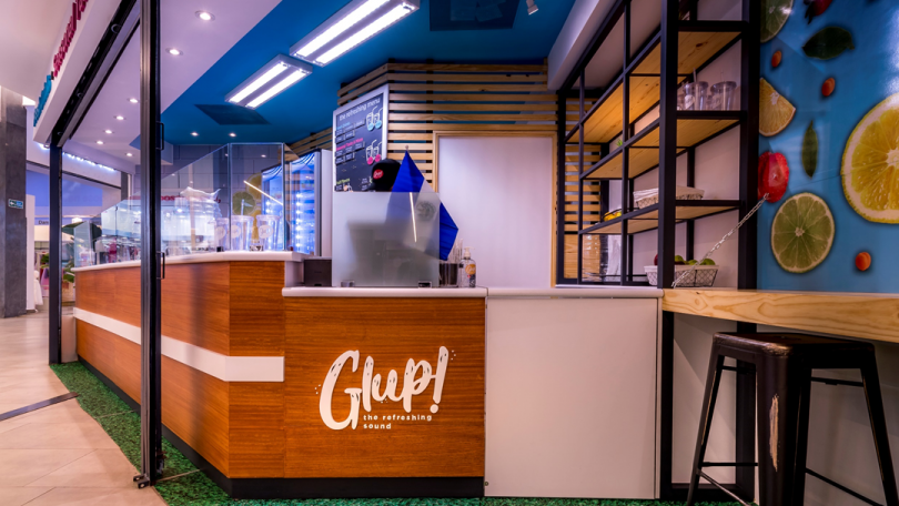Glup! es una refresquería recién lanzada. Es una marca jovial, divertida, dinámica y colorida; enfocada en los jóvenes que desean darse un respiro refrescante con sus bebidas y sabores inigualables, que pueden ir desde los más tradicionales hasta nuevas combinaciones y creaciones. Así pues este lanzamiento se planeó en Mall Cascadas, en un local con un área de 24.40 m2.