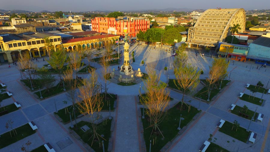 - Vista aérea de la actual Plaza Libertad (2018) fotografía de Mauricio Cáceres y Márvin Rodríguez (El Diario de Hoy, 2018)