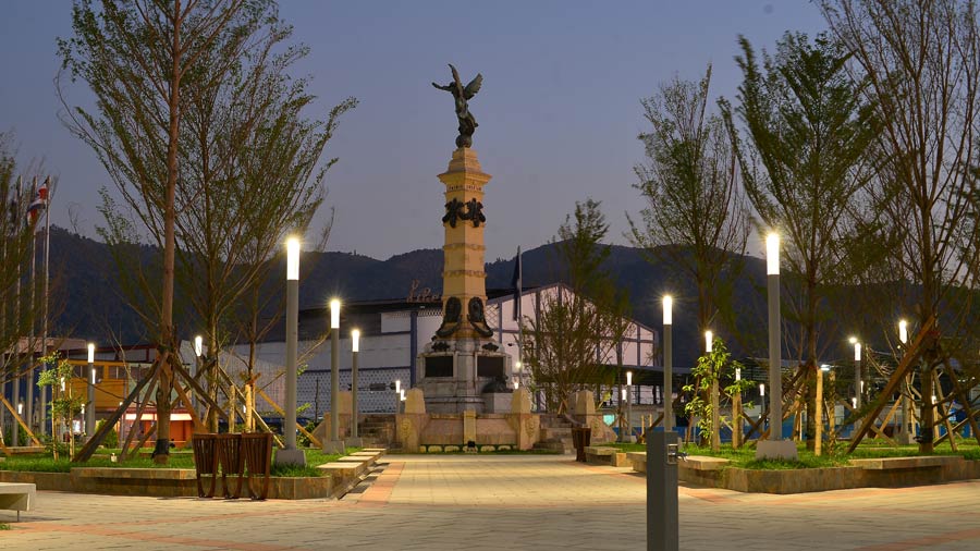 Proyecto de renovación de la plaza Libertad, puede apreciarse la apertura del espacio público e incorporación de nuevos sistemas de iluminación. (Representación virtual publicada por la Alcaldía de San Salvador, 2017. Consultado ese mismo año)