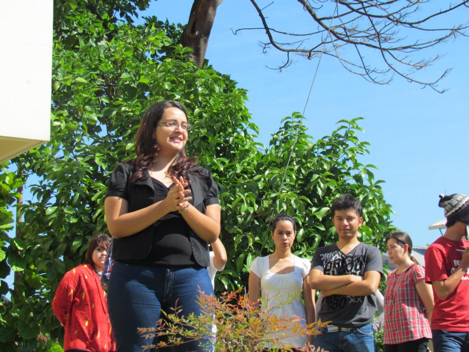 - Arq. Reina Galdámez junto a alumnos universitarios.