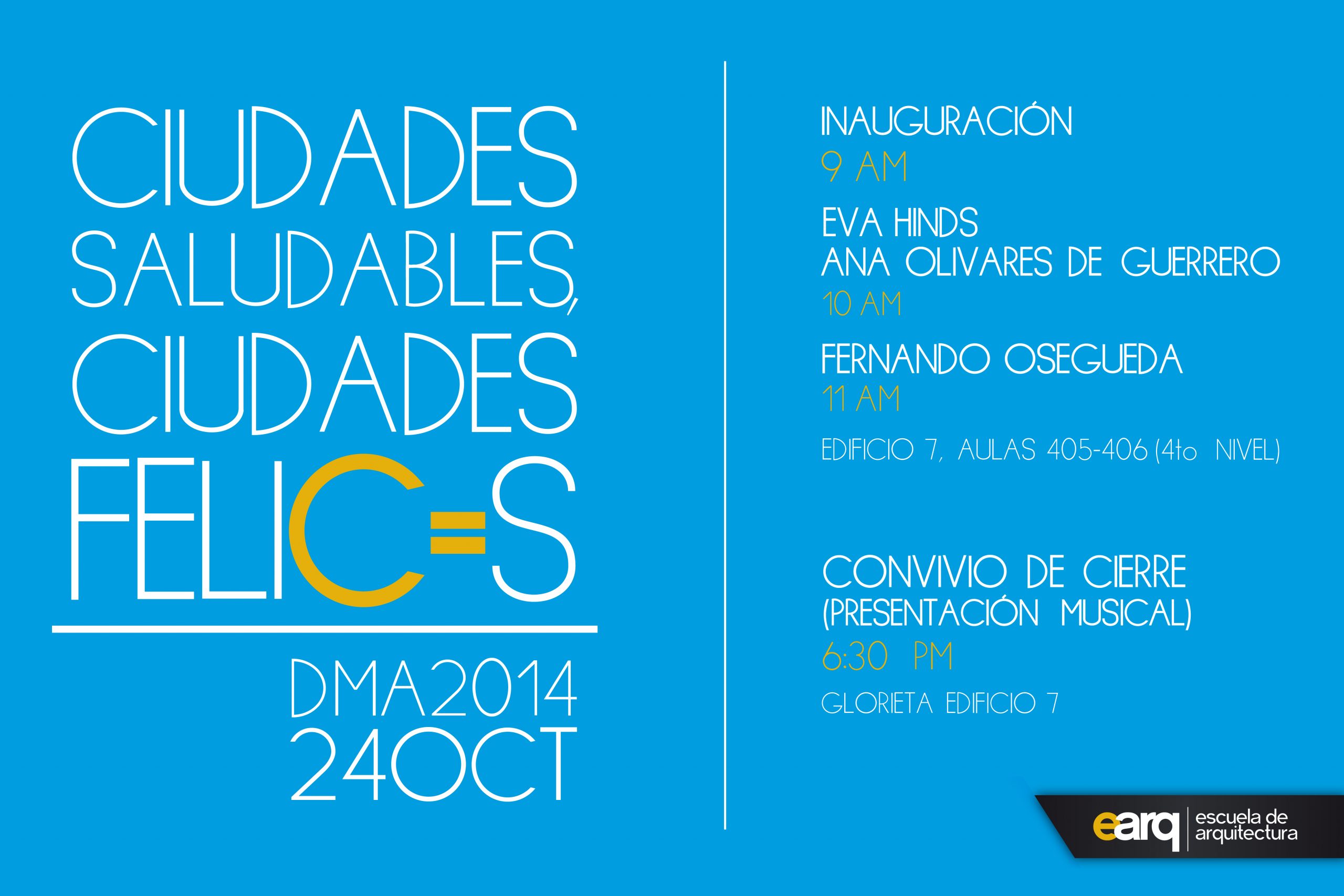 Así pues, este año 2014, el DMA se celebró el 6 de octubre y marca el inicio de una serie de eventos a nivel mundial que las diferentes gremiales y academias realizan en torno a la arquitectura y el hábitat humano, curiosamente y sin percatarse, el Cades celebró la Bienal de Arquitectura coincidiendo con este festejo mundial. La Escuela de Arquitectura (EARQ) de la Universidad Dr. José Matías Delgado (UJMD) ha tomado la iniciativa de realizar un evento simbólico este viernes 24 de octubre, en alusión al tema que la UIA estableció para este 2014: «Ciudades saludables, ciudades felices», la intención es estimular, en los estudiantes y profesores de arquitectura, el debate sobre el rol del arquitecto como proyectista y por consiguiente relacionar el espacio construido con la salud y felicidad de las personas. Dentro de la celebración se contará con la participación de los coordinadores de carrera, arquitectos de trayectoria local y al final de la tarde una presentación artística e instalación escenográfica preparada por alumnos de Arquitectura y Arquitectura de Interiores.