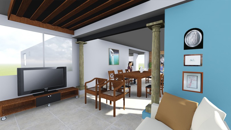 Este apartamento posee interiormente un estilo decorativo colonial contemporáneo, catalogado así por contener ciertos elementos de la arquitectura colonial como: columnas, ladrillo de barro y mobiliario en madera. El lenguaje colonial es contrastado con el uso de colores neutros, mobiliario de gran “geometricidad”, una potente continuidad espacial y pinturas contemporáneas a cargo, en su mayoría, del artista Roberto Galicia, las cuales aportan un fuerte carácter.