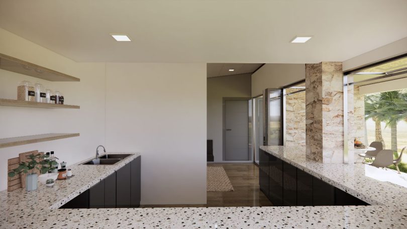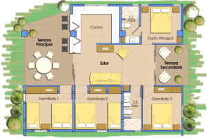 Este proyecto se ubica en el departamento de Sonsonate, en la costa salvadoreña. Acá nuestro trabajo consistió en realizar un «update» a un rancho, con un área de 88.87 m2 de construcción, en un complejo privado. Contaba con instalaciones básicas, 3 dormitorios, un baño, cocina y una área social muy amplia. Aprovechamos la edificación existente y la renovamos, para crear un ambiente más confortable y con mejores condiciones. Obtuvimos entonces 103.53 m2, un espacio más comodo y con mayor capacidad, para el disfrute de sus visitantes.