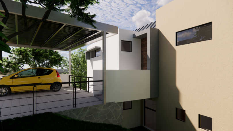 El proyecto consiste en una vivienda unifamiliar concebida para albergar a sus propietarios e invitados. Debido a la condición topográfica, la edificación se emplaza sobre una terraza y muro de retención, que se encuentra por debajo del nivel de calle. Razón por la que se accede por medio del segundo nivel, que se conecta al estacionamiento y la calle por medio de un puente.