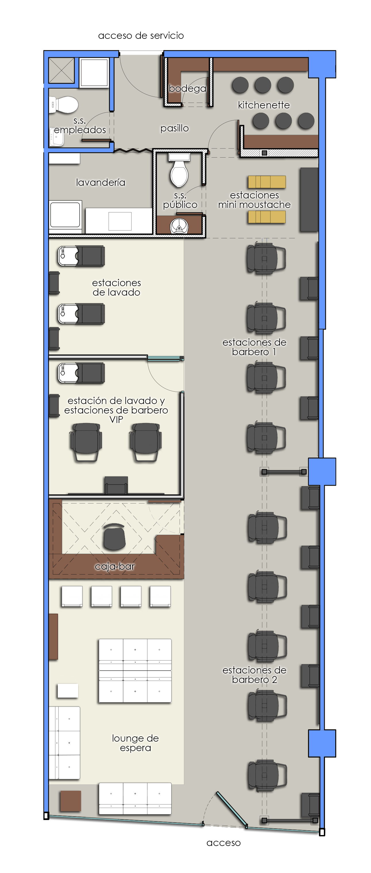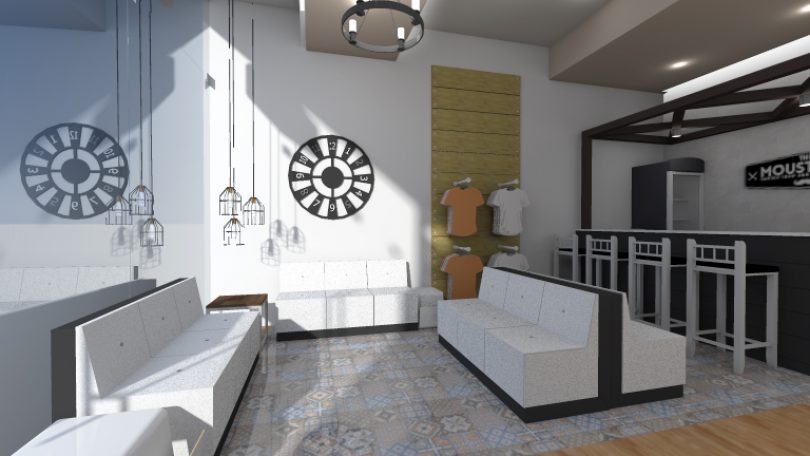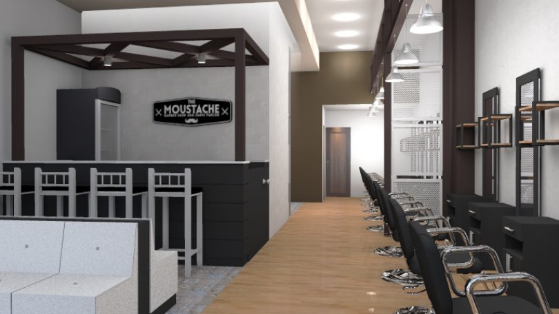 The Moustache es una barbería, que se caracteriza esencialmente por unir la experiencia de los mejores barberos con la comodidad que merecen los clientes a quienes aspira llegar. Entre los servicios que brinda se encuentran: bebida de cortesía, corte de cabello o barba y lavado de cabello con masaje capilar y agua caliente. En esta oportunidad el proyecto se enfoca en la nueva sucursal en el local 168c de la nueva etapa del centro comercial Metrocentro Santa Ana.