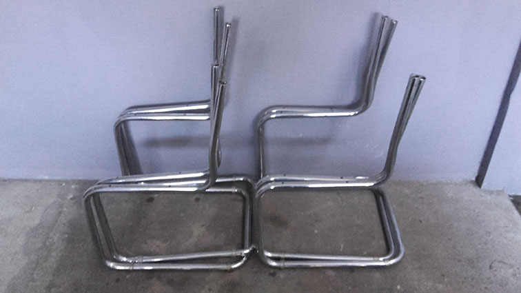 Uno de estos días acompañamos a dos arquitectos en la restauración de un juego de sillas que conservan desde principios de los 80, las adquirieron en una tienda cuyo nombre ya no recuerdan. Las sillas están hechas de madera, acero cromado y un tejido de fibra sintética que hace las veces de asiento y respaldo, pero lo curioso es que solo tienen dos patas. Leíste bien. DOS PATAS.